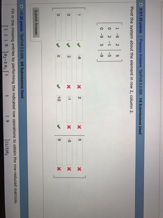 Enter the augmented matrix with all cells in their original position 24 6 1 3 6 0 -2 6 Need Help. 102 points DETAILS PREVIOUS ANSWERS TANAPMATH7 52026. Enter the augmented matrix with all cells in their original position144246 Get the answer to your homework problem. The pivot or pivot element is the element of a matrix or an array which is selected first by an algorithm eg. Click here to get an answer to your question Pivot the system about the element in row 2 column 2. In this case finding this element is called pivoting. You can put this solution on YOUR website. Okay so for the first diagonal two times negative one times negative two plus negative. All you do is use row reduction techniques to accomplish this.