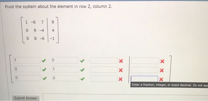 In the case of matrix algorithms a pivot entry is usually required to be at least distinct from zero and often distant from it. Any variable that corresponds to a pivot column in the aug- mented matrix of a system. Recall that pivoting about an entry means to make that entry a 1 and all other entries in that column zeros 1 -2 10. 11Pivot the system about the bolded element. Recall that pivoting about an entry means to make that. You can put this solution on YOUR website. Pivot the system about the element in row 2 column 2.